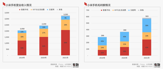 但事实上,IOT和互联网的收入占比却并没有提升,反而有所下降。