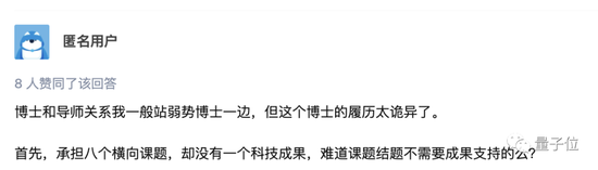 但这也成为网友质疑最多的点,承担8个横向课题,却没有一个科技成果。