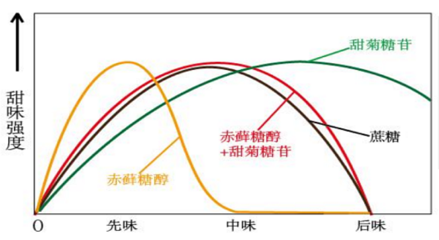 图:蔗糖和多种甜味剂在人口中的甜味停留时间