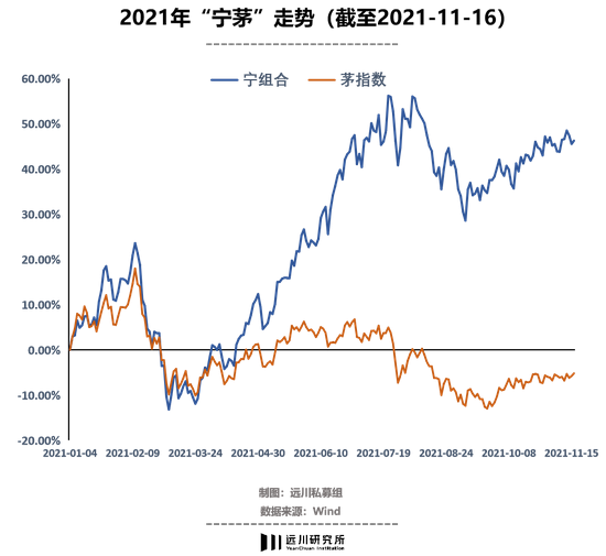 基金经理们割裂的表现,隐含了一层宏观环境分野的意味:去年的茅指数傲视群雄,多是因为无风险利率下行,市场追求确定性;而今年的逻辑演变为通胀预期引申而来传统龙头拔估值的约束,处于高景气的宁组合反而能够利用成长去消化估值。
