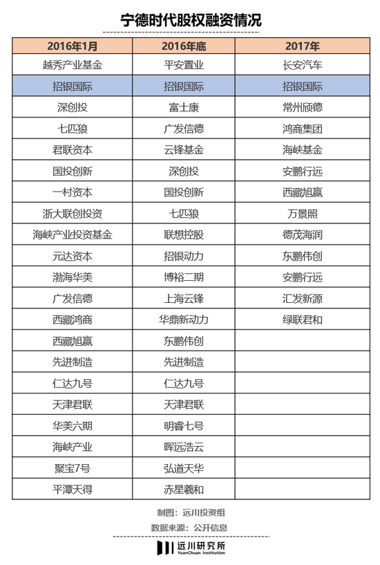 如果翻看宁德时代在上市前的历次股权融资,会发现在一长串名单中,既有君联资本、云峰基金、深创投这类一级市场老牌豪强,也有平安、招银国际这样的金融巨头,还有七匹狼、华西村这些依靠投资焕发第二春的传统产业老炮,甚至还有代工巨人富士康的参与。