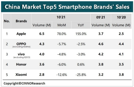 这也是苹果自2015年12月以来,时隔6年再次登顶中国市场。