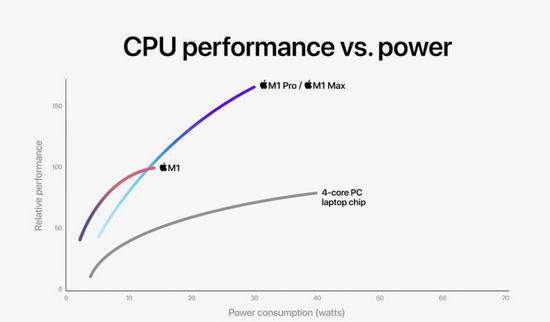 苹果表示,M1 Pro 和M1 Max 的高效架构意味着,无论 MacBook Pro是处于插入电源还是使用电池状态,它们都能提供相同水平的性能。同时,M1 Pro 和 M1 Max 均配备 16 核神经引擎,用于设备上的加速机器学习和改进相机性能。